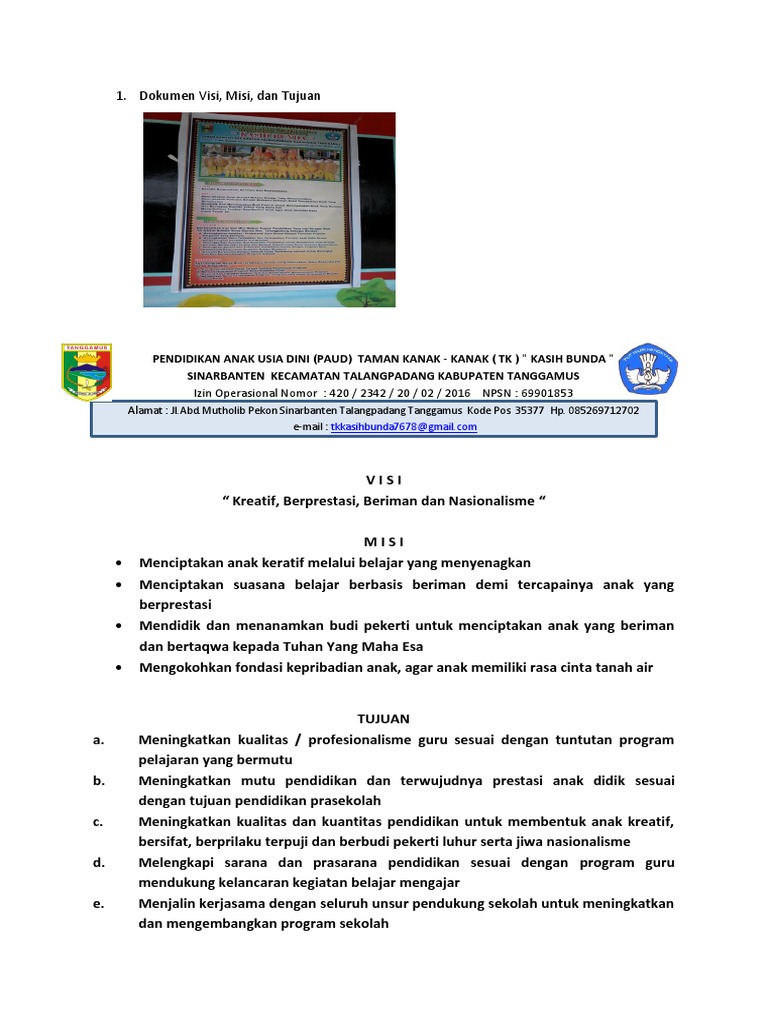 2 contoh visi misi dan tujuan paud tk kb tpa sps paud jateng.