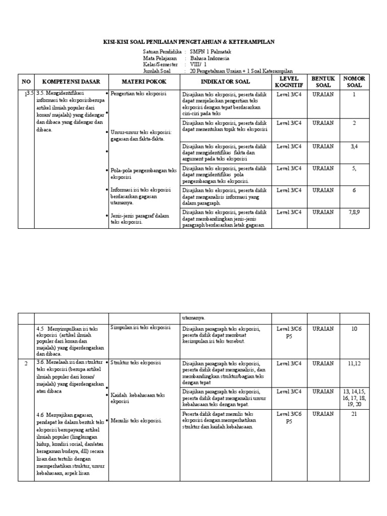 Kisi Kisi Pas Bahasa Indonesia Smp Kelas 8 Semester Ganjil Kurikulum 2013 Tahun Pelajaran 2019 2020 Didno76 Com from 1.bp.blogspot.com We did not find results for: Maybe you would like to learn more about one of these? Check spelling or type a new query. Kisi kisi soal teks eksposisi kelas 8.